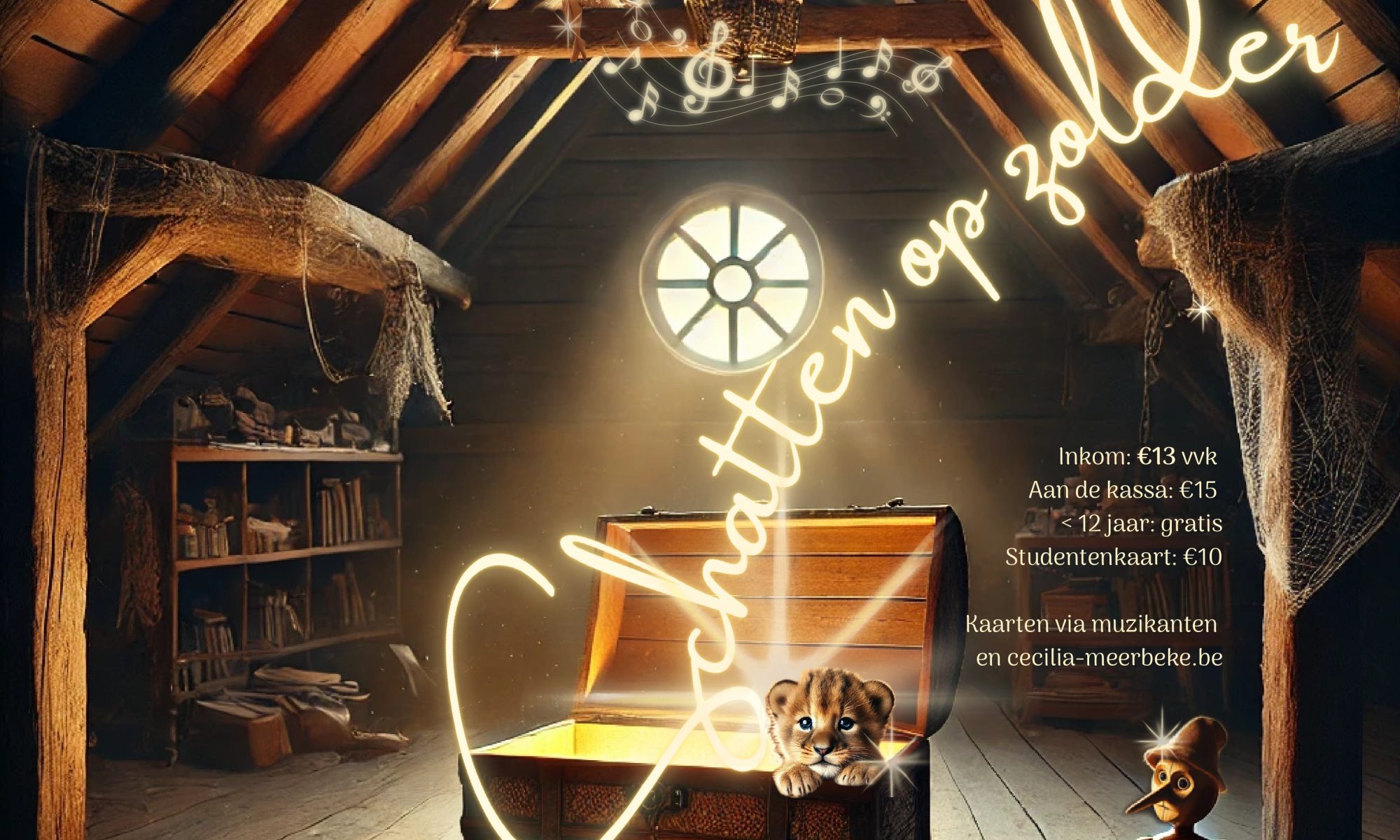 Houd je vast, want “Schatten op zolder” brengt je terug naar de tijd van sprookjes, magie en betoverende melodieën! Dus trek je beste prinsessenjurk aan, neem je allerleukste toverstaf mee en kom genieten van muziek uit een jeugdigere tijd. Het zal klinken als een sprookje maar… dit wordt een legende.